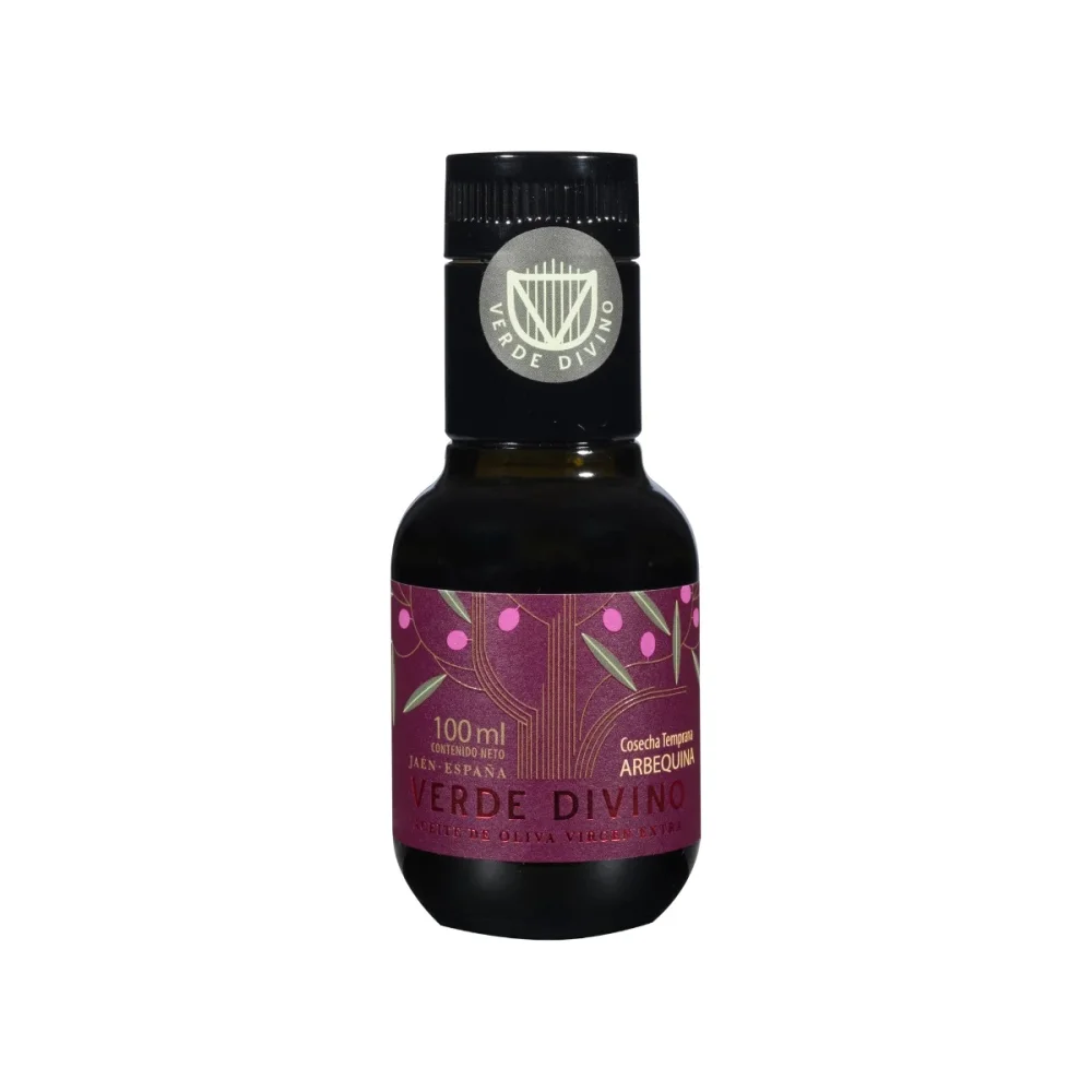 Natives Olivenöl extra 100 ml der Sorte Arbequina aus früher Ernte, sehr ausgewogen und von exquisiter Komplexität. Sein milder Geschmack macht es zum perfekten Begleiter für Salate, Frühstück, Rohgerichte oder zum Backen.