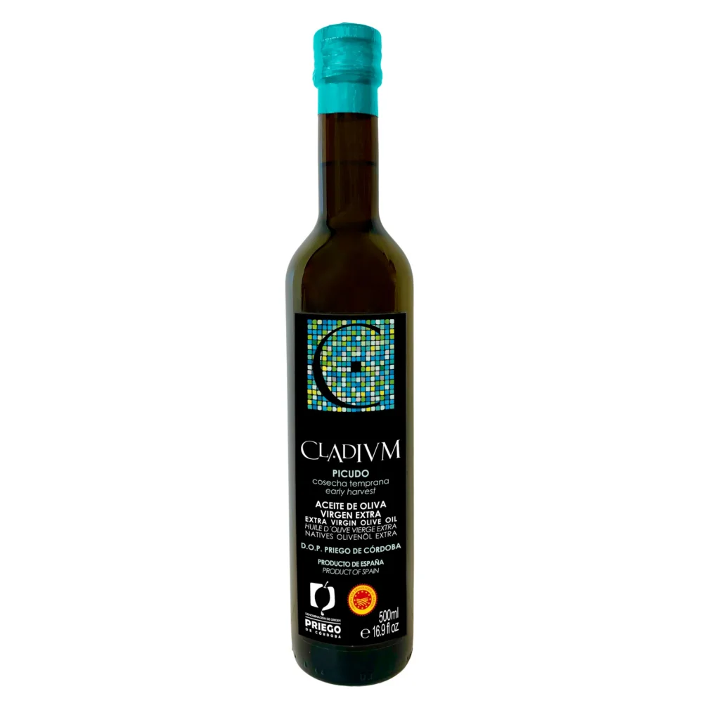 Cladivm Picudo ist ein Premium-Olivenöl nativ extra aus früher Ernte, mittelgrün fruchtig mit reifen Nuancen. Ausschließlich aus Oliven der autochthonen Sorte Picudo aus der Region Priego de Córdoba hergestellt; das Ergebnis ist ein feines, elegantes und insgesamt sehr ausgewogenes Öl.
