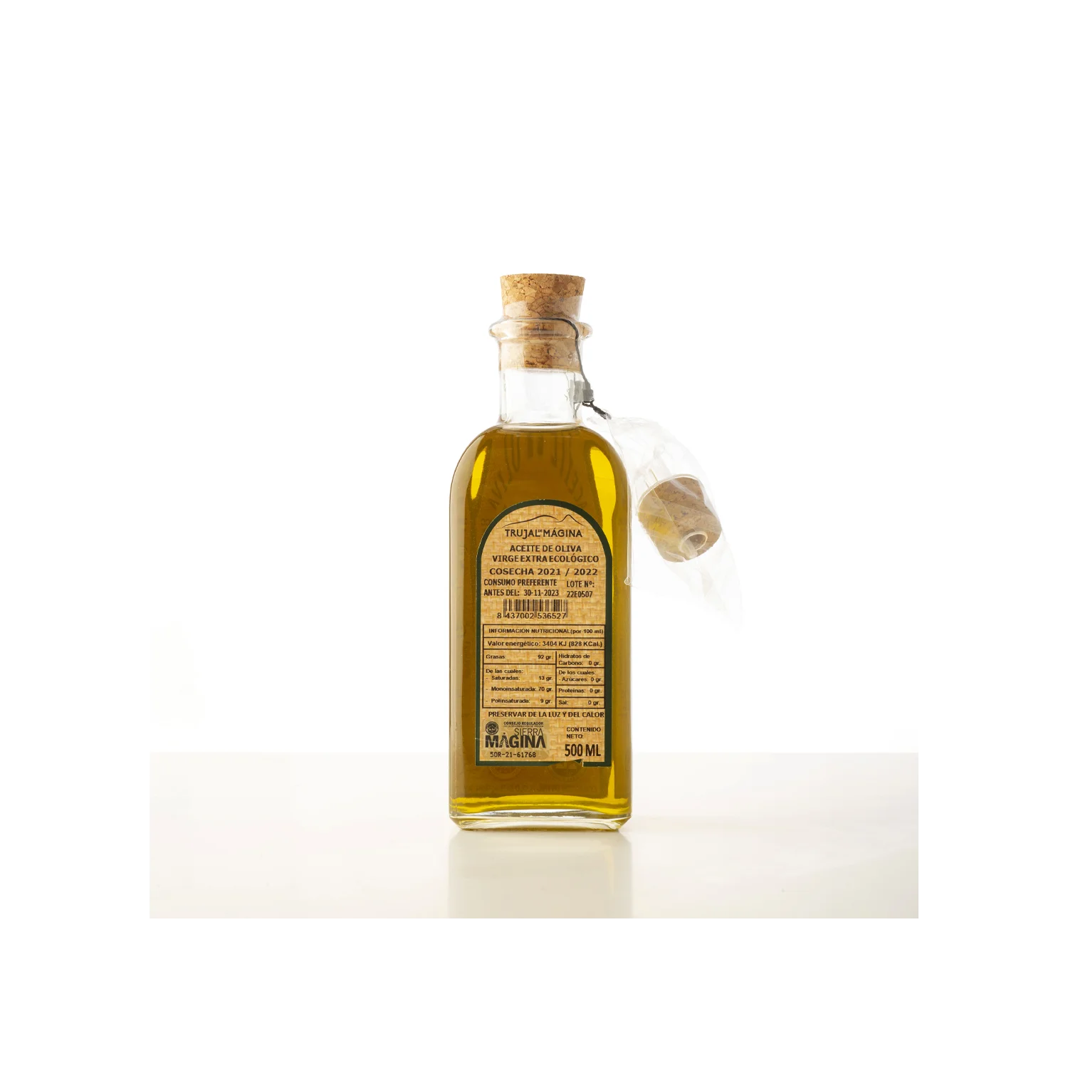 Bio-natives Olivenöl extra aus Sorte Picual hergestellt in Cambil (Jaén), geschützt durch die Ursprungsbezeichnung Sierra Mágina.