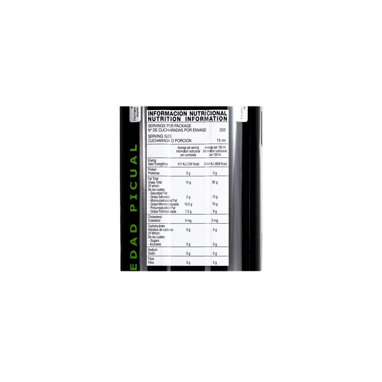 Ökologisches sortenreines Picual-Olivenöl. Säuregehalt von 0,13º.