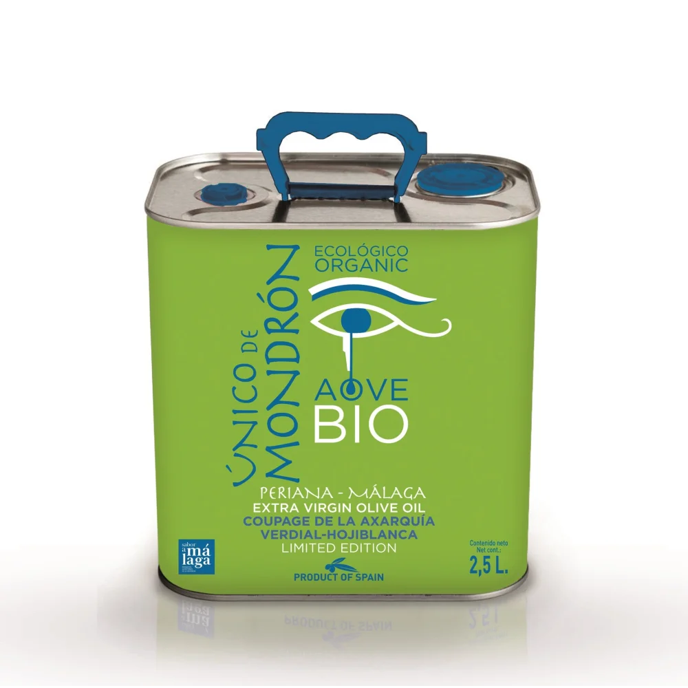 Único de Mondrón Bio ist ein biologisches natives Olivenöl extra (Coupage) aus Bergolivenhainen der exklusiven Sorte Verdial de Vélez und der renommierten Hojiblanca, aus Oliven, die in der ersten Novemberwoche geerntet wurden,