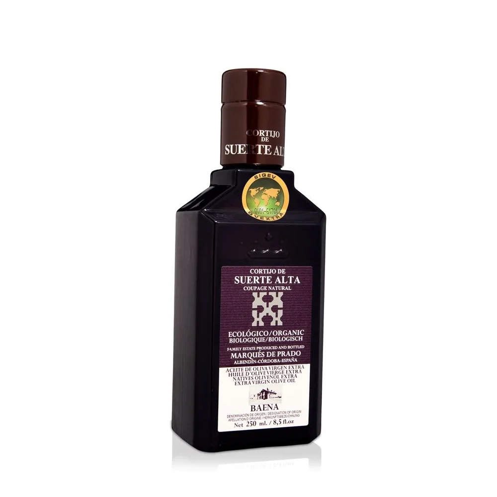 Das Olivenöl Cortijo de Suerte Alta Coupage Natural wird mit den Oliven aus dem ältesten Olivenhain des Guts hergestellt, 100 Jahre alt. Bäume, die im traditionellen System mit drei für Baena charakteristischen Sorten gepflanzt wurden: Picudo, Picual und Hojiblanco.