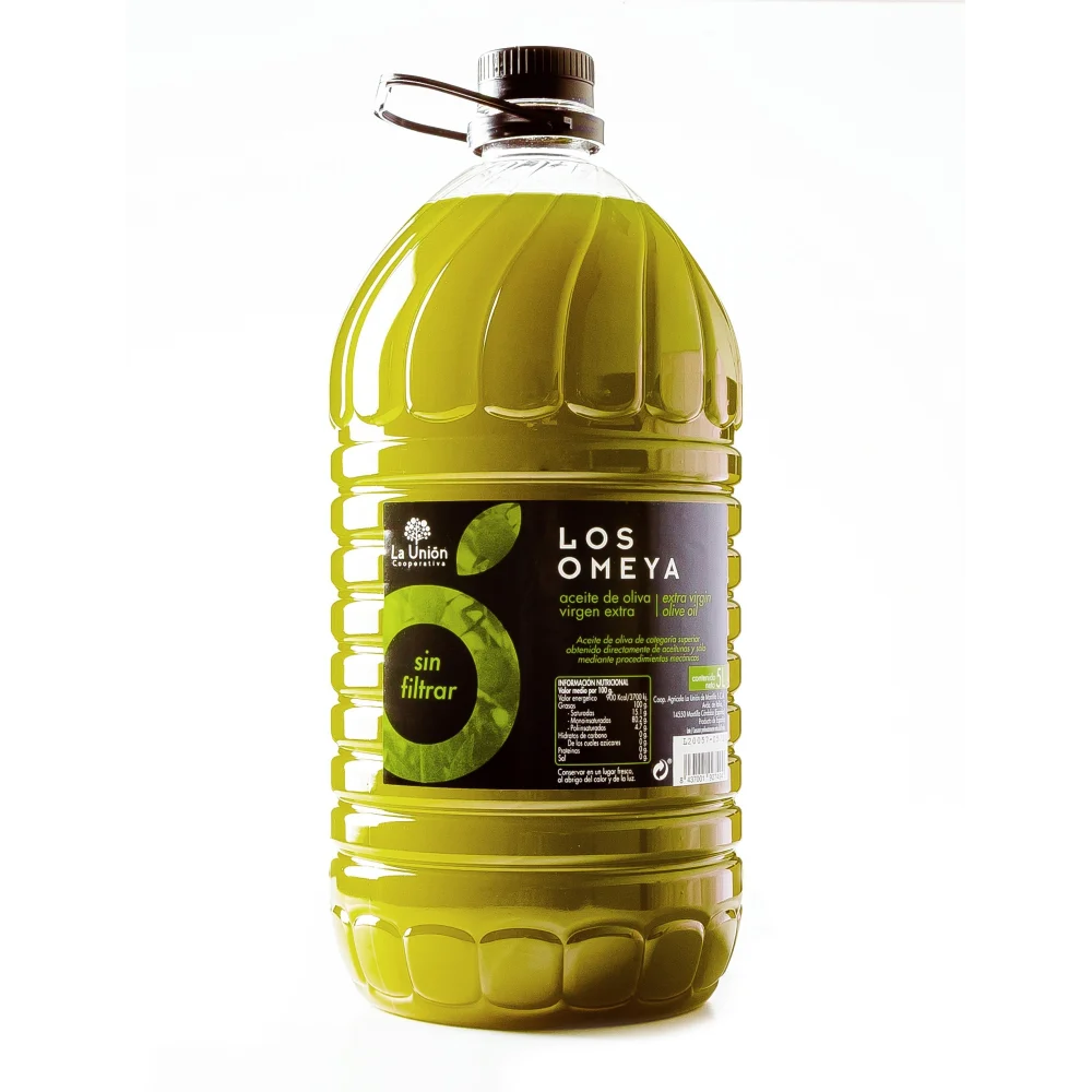 Los Omeya unfiltriert ist ein frisches und aromatisches natives Olivenöl extra, ein natürlicher Saft aus der ersten Pressung.