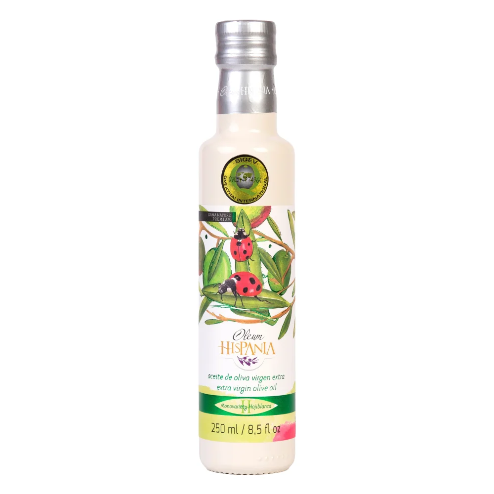 Das Olivenöl Oleum Hispania Nature Premium Hojiblanca ist ein sortenreines Olivenöl aus früher Ernte hergestellt in der Subbética Cordobesa.