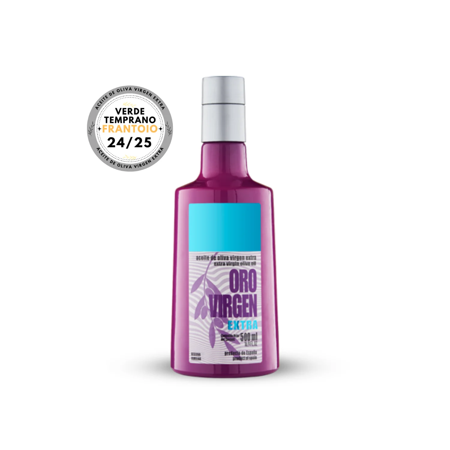 ORO VIRGEN Extra is a Spanish extra virgin olive oil of Picual variety with maximum quality, coming from a selection of olives harvested between November and December (veraison), extracted at low temperature, and resulting in our greatest success to obtain a wonderful olive juice. Fruity with slight bitterness and spiciness in a balanced way, it derives an incomparable flavor and a high level of natural antioxidants (vitamin E and phenolic compounds), especially beneficial for health.
