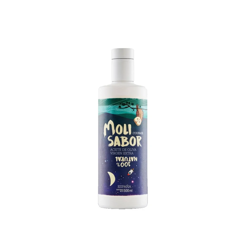 Molisabor Coupage 是一款由皮夸尔(Picual)与阿贝奎纳(Arbequina)品种调配而成的高级橄榄油,产自哈恩(Jaén),采用 冷榨 于10月和11月进行。