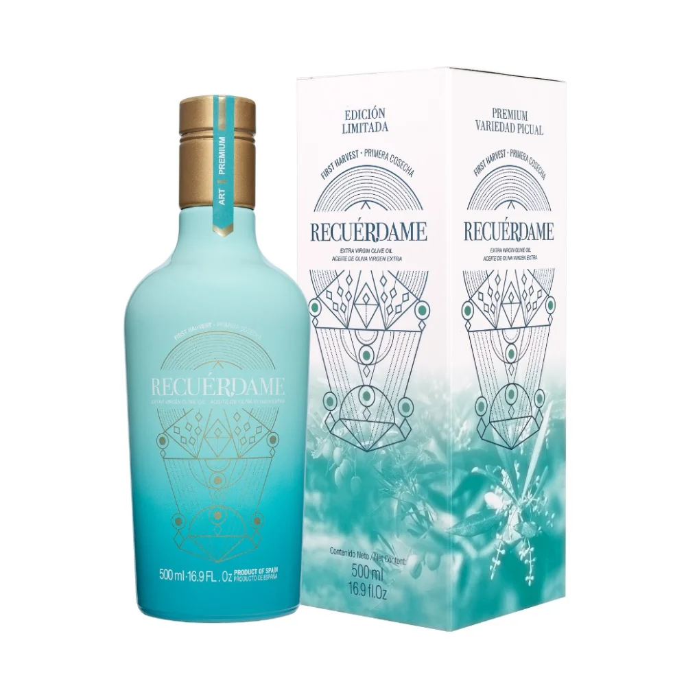 Recuérdame 是一款早收的优质皮夸尔(Picual)特级初榨橄榄油 r于十月满月下采收,特别甄选,限量供应。