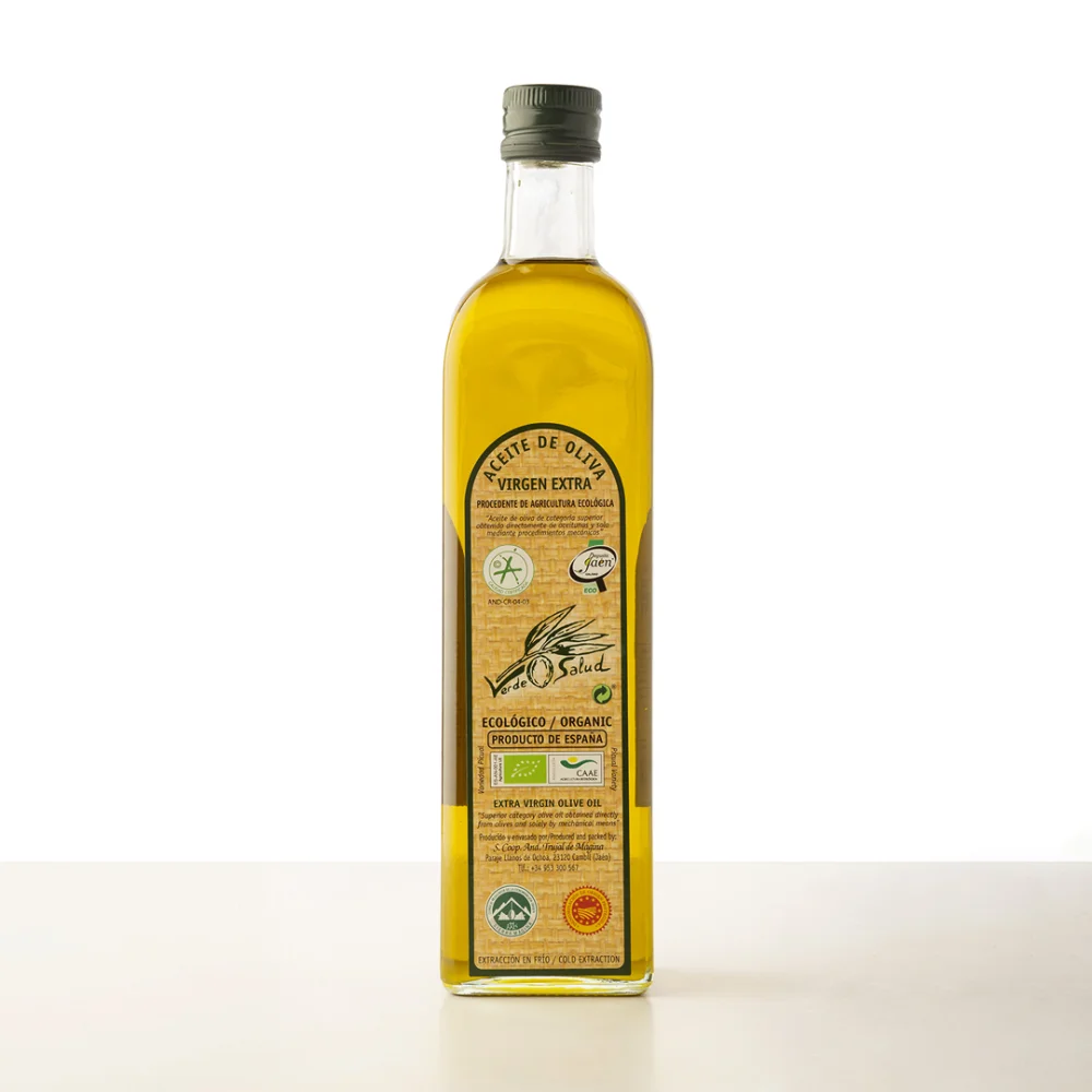 Verde Salud 是一款特级初榨橄榄油 有机皮夸尔(Picual)品种 并且拥有 Sierra Mágina 原产地名称(D.O.P.).