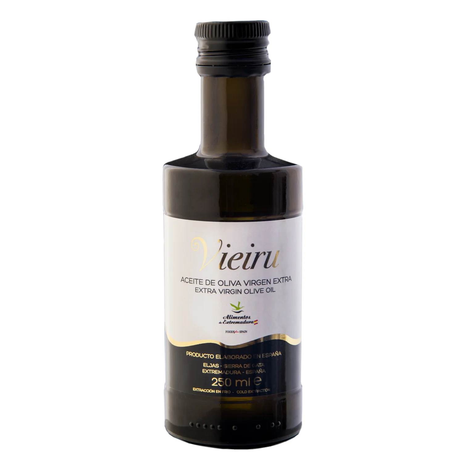 Vieiru 这是一款冷榨初榨的特级初榨橄榄油,仅采用11月转色期(envero)的卡塞雷尼亚曼萨尼亚(manzanilla cacereña)品种橄榄制成。该品种为本土品种,种植于西班牙埃斯特雷马杜拉北部的加塔山脉和拉斯乌尔德斯地区。