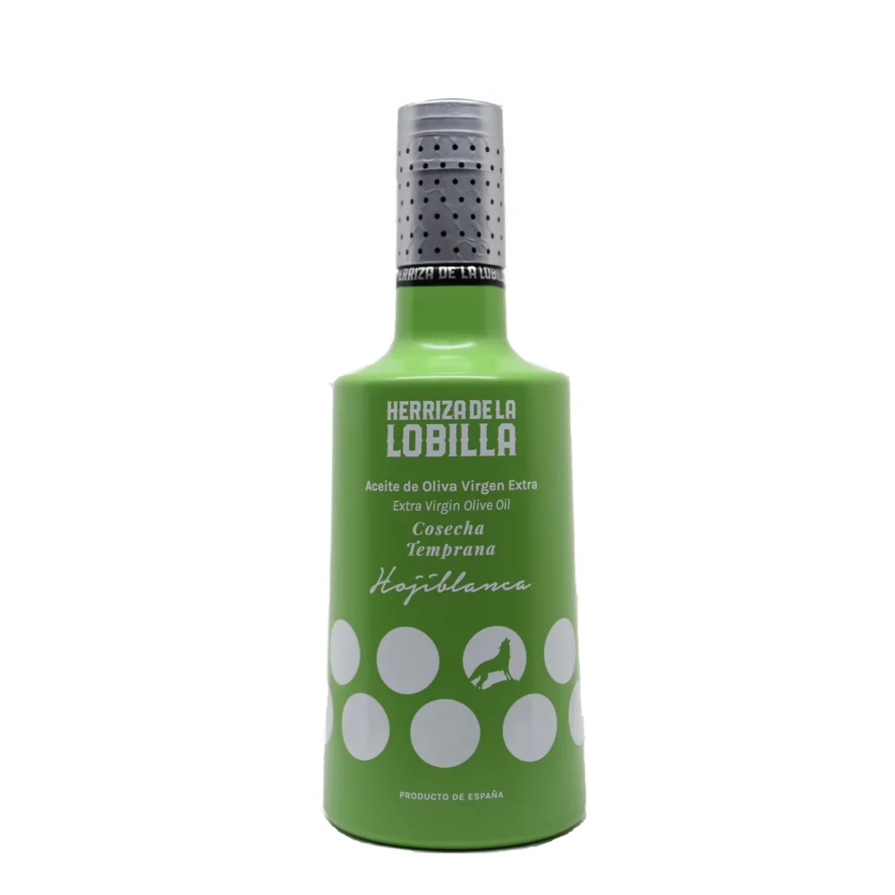 “Herriza de la Lobilla”品牌的 Hojiblanca 特级初榨橄榄油, 来自手工采摘的青橄榄 在10月前两周、成熟度最佳时采收。