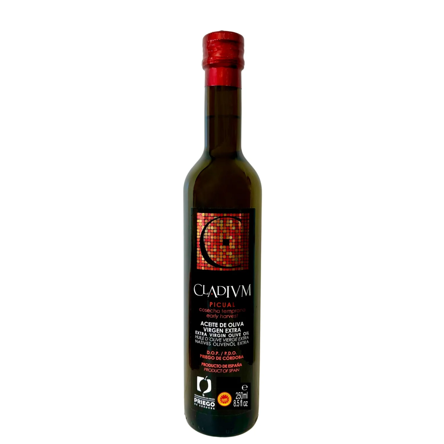 Cladivm Picual 这是一款早摘的高端特级初榨橄榄油,具有浓郁的青绿果香。完全选用科尔多瓦省普列戈-德科尔多瓦地区的皮夸尔(Picual)品种橄榄精制而成,成品油细腻、优雅,整体非常均衡。